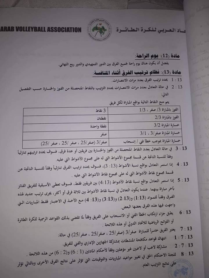 * البطولة العربية سيدات في الكرة الطائرة نظامها نظام بطولة وحاليا النادي الصفاقسي فاز في 5 مباريات ولكنه خسر شوطين اَي انه حصد 14 نقطة في حين الاهلي بالعلامة الكاملة حصل على 12 نقطة في انتظار مواجهته غدا للزمالك.