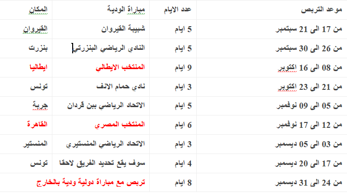 المنتخب الاولمبي التونسي : برنامج التحضيرات من سبتمبر الحالي الى ديسمبر