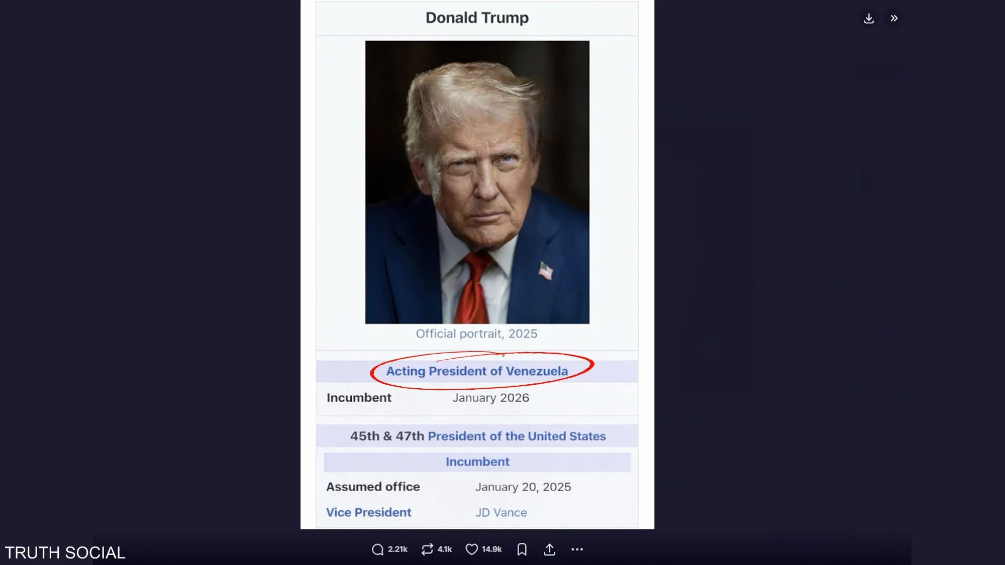 ترامب ينصّب نفسه '' رئيسا مؤقتا لفنزويلا"