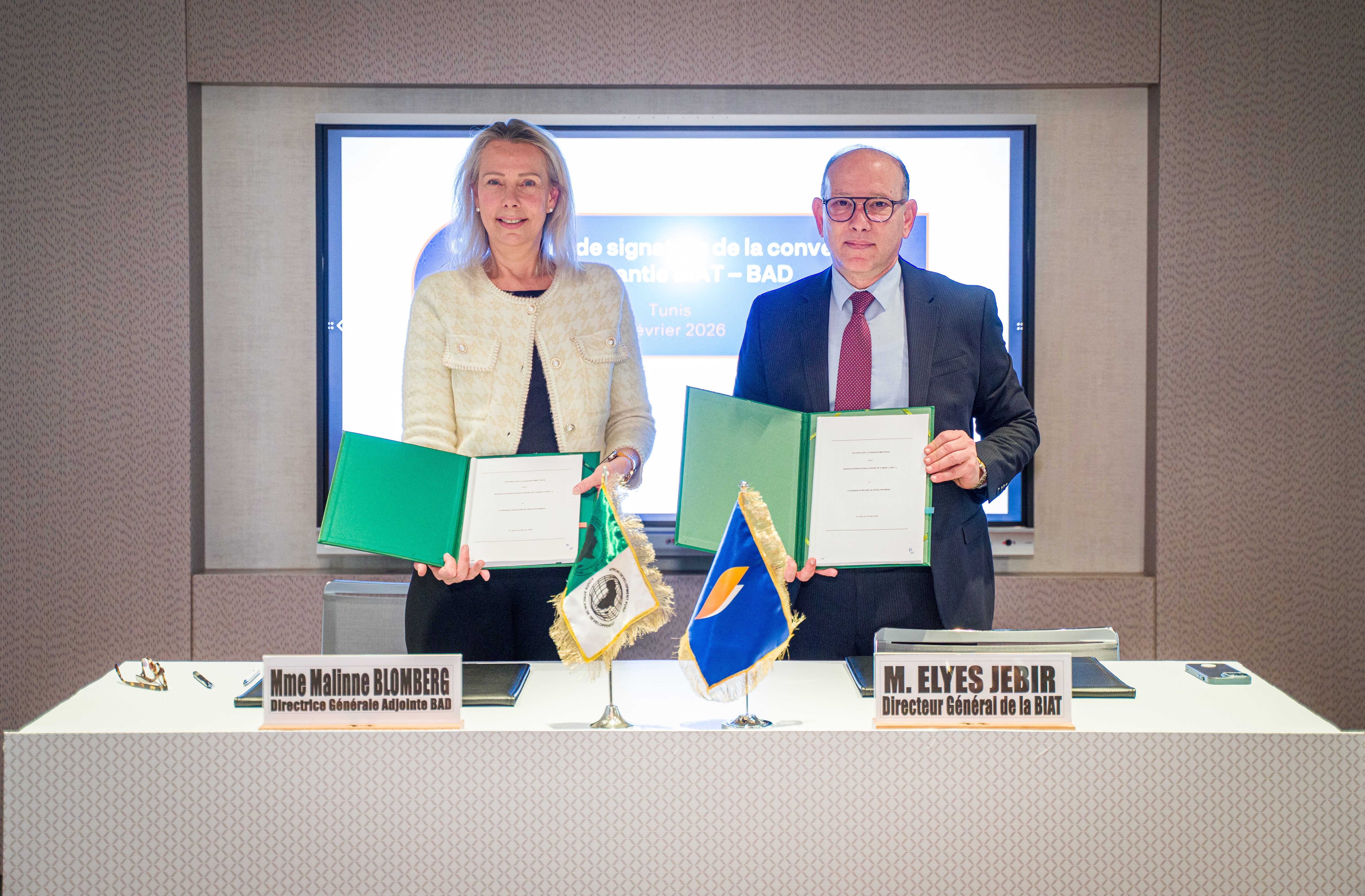 Une convention de partenariat portant sur une garantie de transaction de 50 millions de dollars a été signée entre la BIAT et la BAD – lors d’une cérémonie tenue le 6 février 2026 à la BIAT. Cette garantie s’inscrit pleinement dans la vision de la BIAT de renforcer le commerce international et de soutenir l’économie nationale. Elle s’accompagne d’une large couverture géographique, en partenariat avec les banques correspondantes co-contractantes de la BAD.