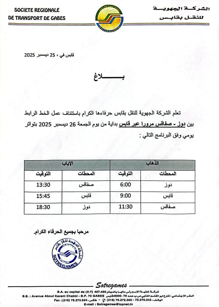 غدا: استئناف عمل الخط الرابط بين دوز و صفاقس عبر قابس