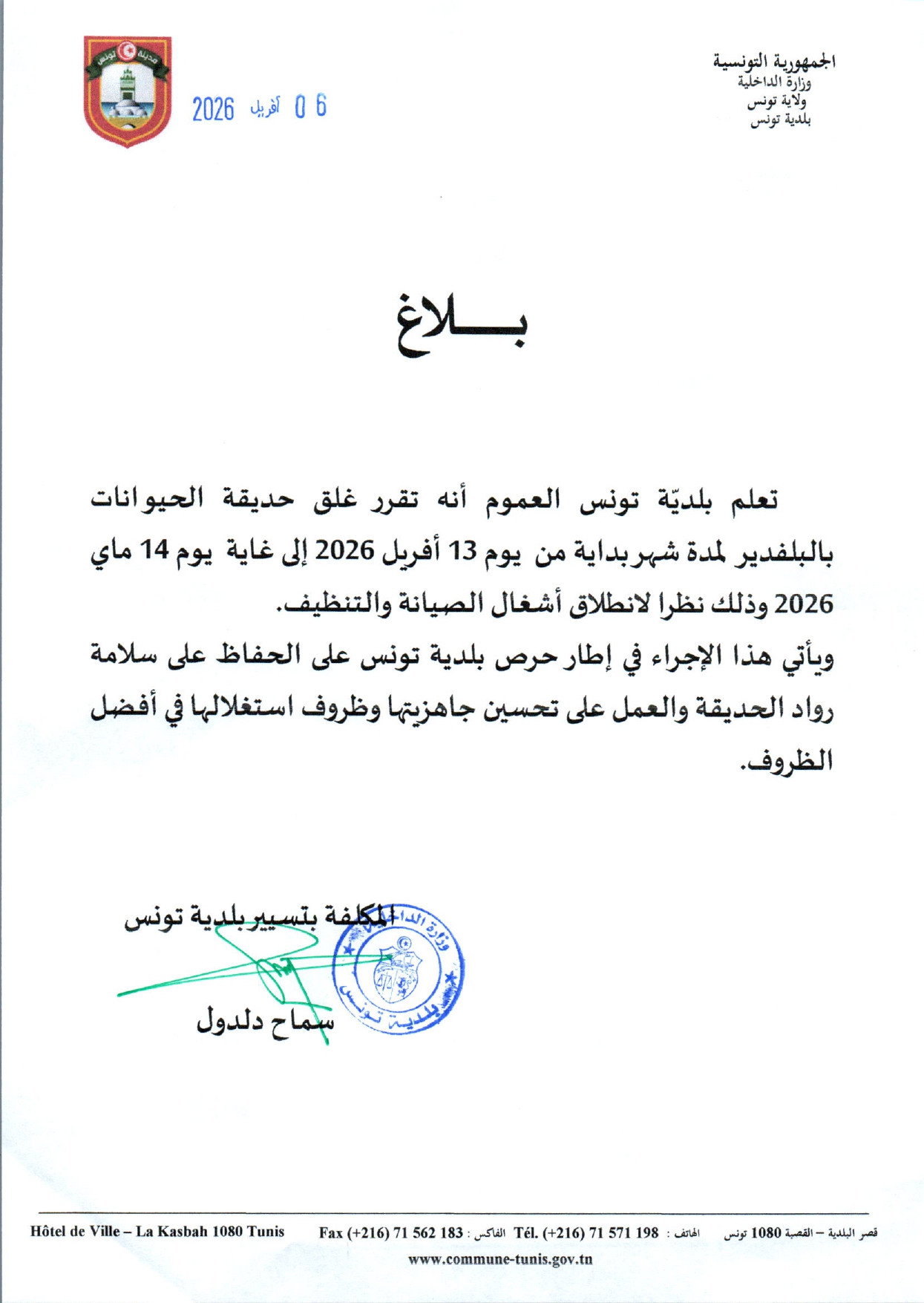 وأوضحت البلدية أن هذا القرار يأتي في إطار انطلاق أشغال الصيانة والتنظيف، بهدف تحسين جاهزية الحديقة والارتقاء بظروف استغلالها والحرص على الحفاظ على سلامة روادها.
