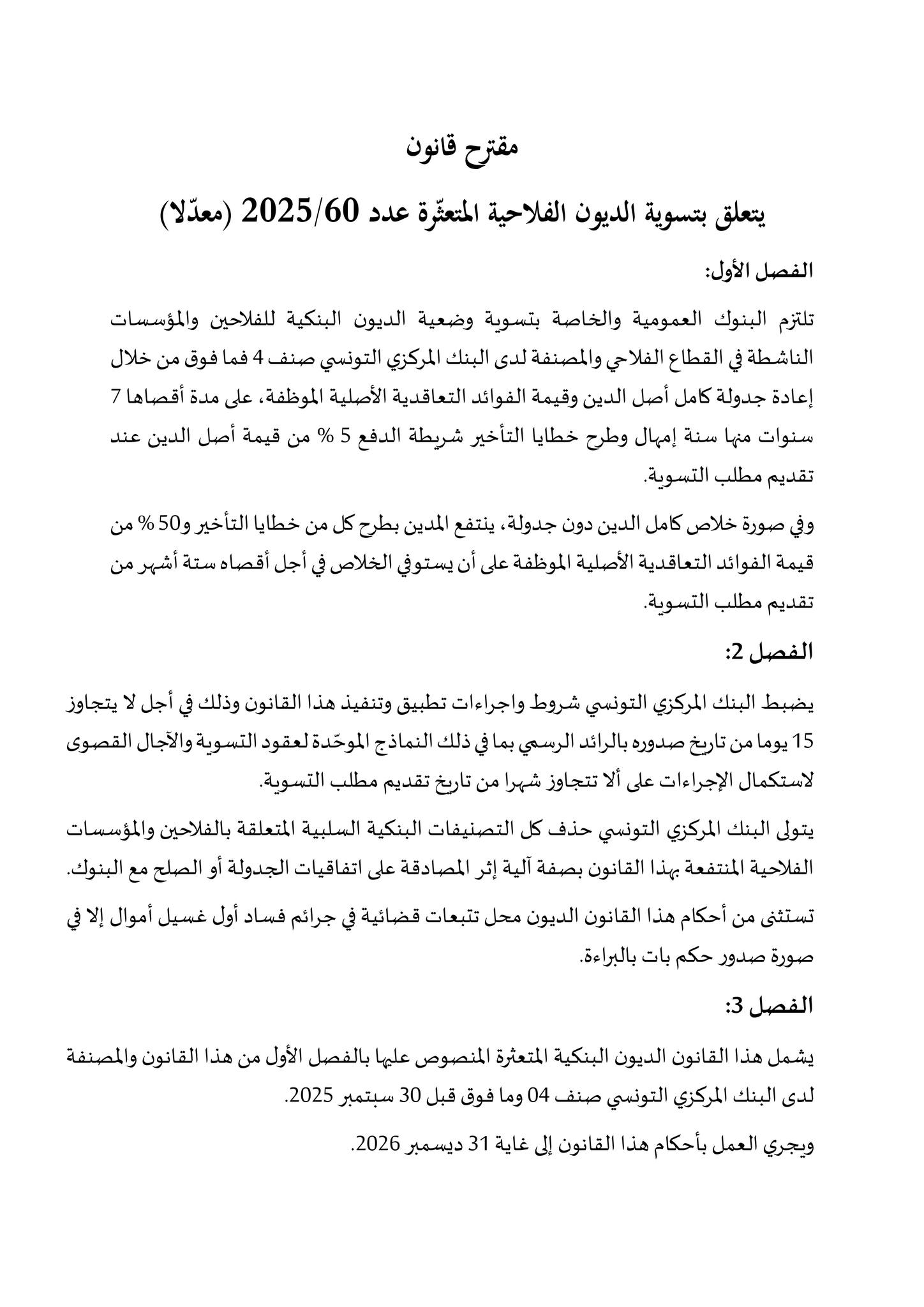 البرلمان يصادق على مقترح قانون يتعلّق بتسوية الديون الفلاحية المتعثرة