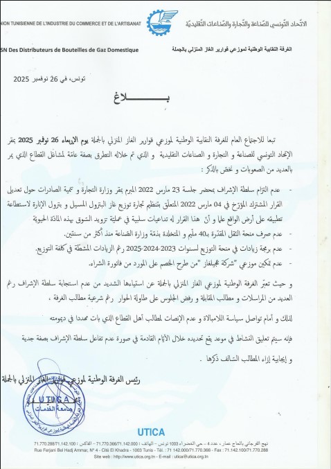 كما أشارت الغرفة إلى عدم صرف منحة النقل المقدرة بـ40 مليماً، والتي ما تزال عالقة لدى وزارة الصناعة منذ أكثر من سنتين، إلى جانب عدم برمجة زيادات في منحة التوزيع لسنوات 2023 و2024 و2025، رغم الارتفاع الكبير في كلفة التوزيع.