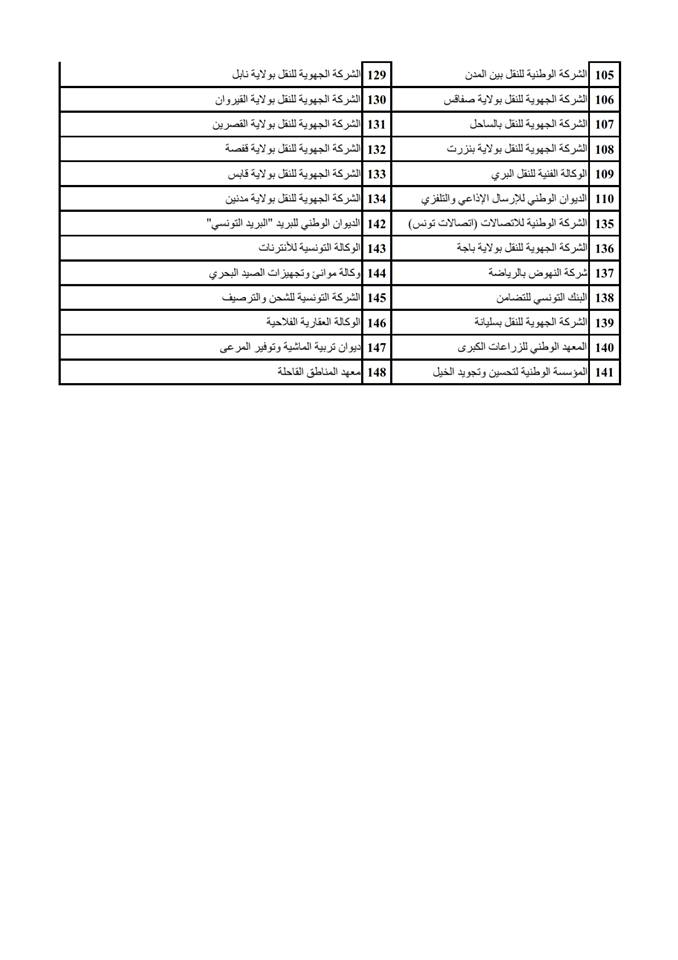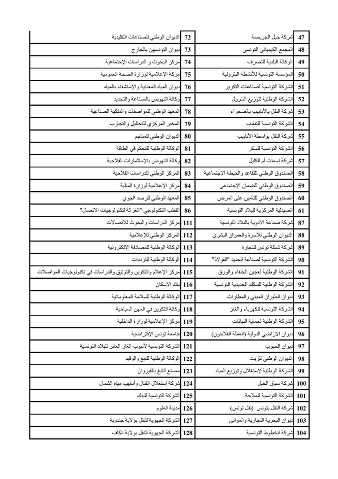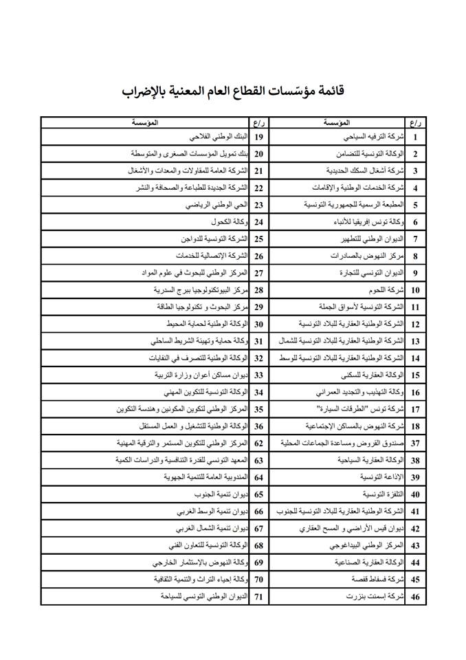 وفيما يلي قائمة مؤسسات القطاع العام التي يشملها الإضراب :